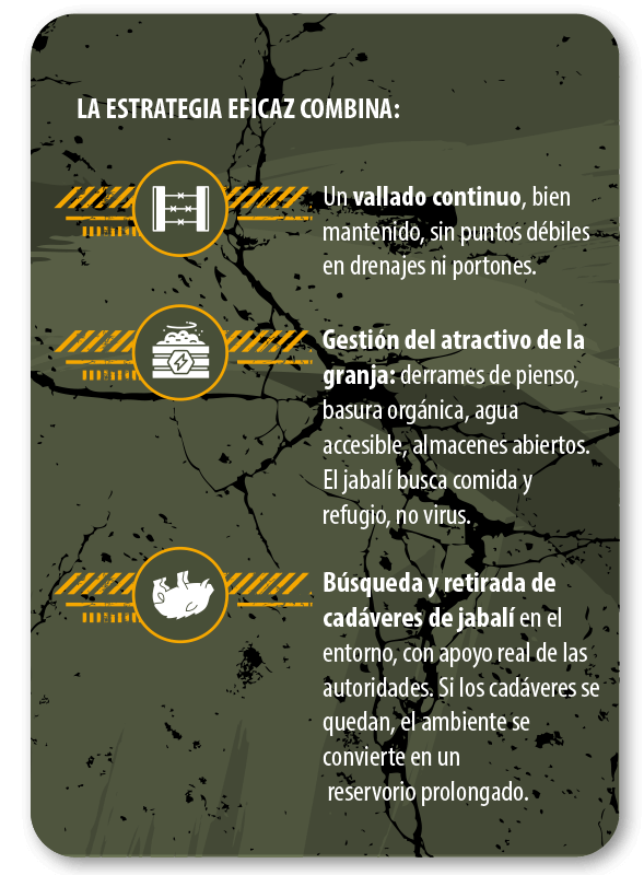 El virus está ahí fuera, en jabalíes, en productos, en el ambiente… esperando a que bajemos la guardia.