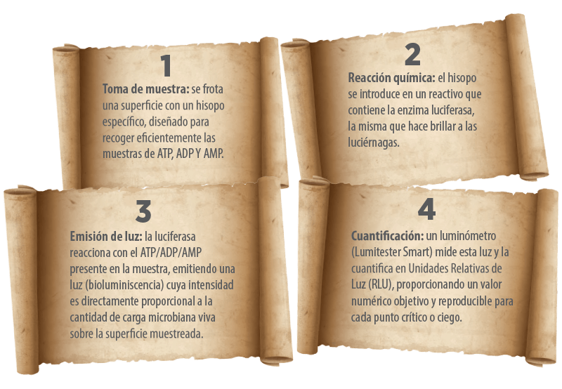 Para superar estas limitaciones y transformar la bioseguridad de un arte basado en la percepción a una ciencia basada en datos, la tecnología de bioluminiscencia con medición en niveles de RLU de ATP, ADP y AMP se ha consolidado como una herramienta de validación rápida y objetiva, indispensable en la bioseguridad actual.