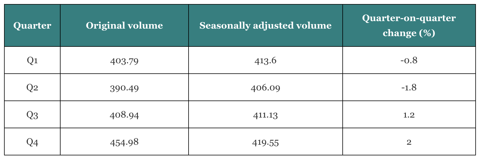 Data from the Philippine Statistics Authority show that seasonally adjusted pig production reached 419.55 thousand tons, liveweight, from October to December 2025. This marked a 2% increase compared with the previous quarter’s 411.13 thousand tons.