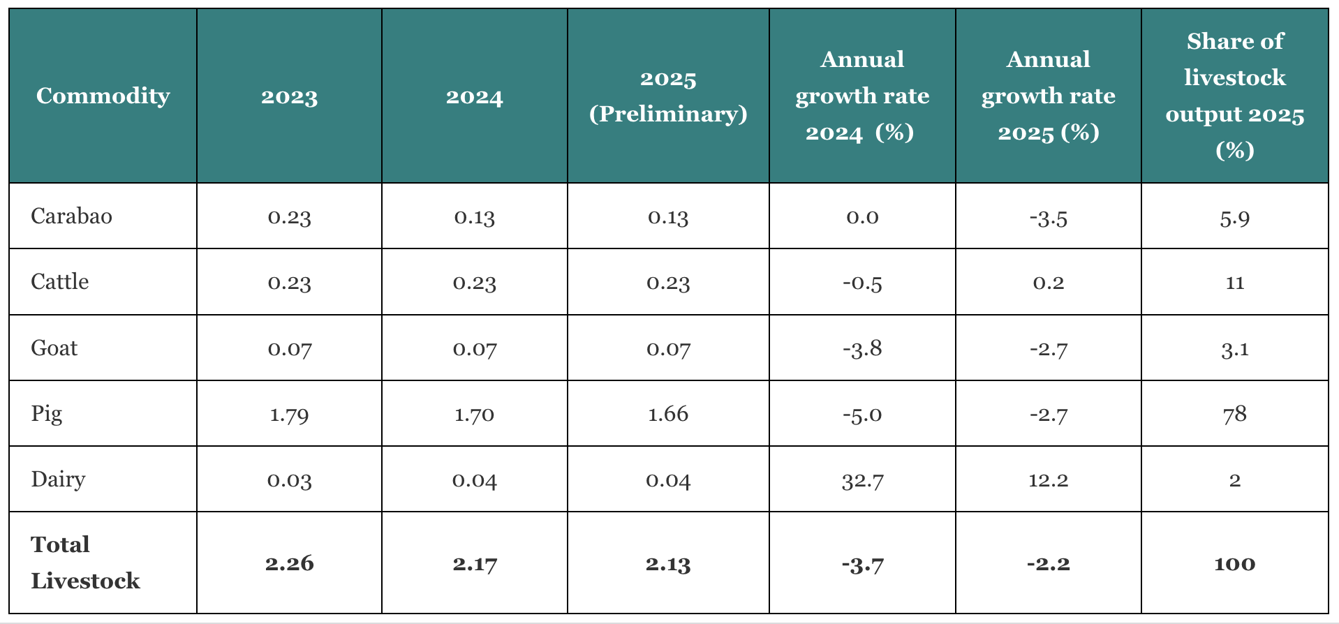 Table 2. Philippine annual livestock production by commodity, 2023-2025