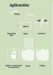 La aplicación de Masterfly® Baites sencilla y eficaz. Se presenta en polvo soluble, listo para diluir en agua y aplicar mediante pintado.