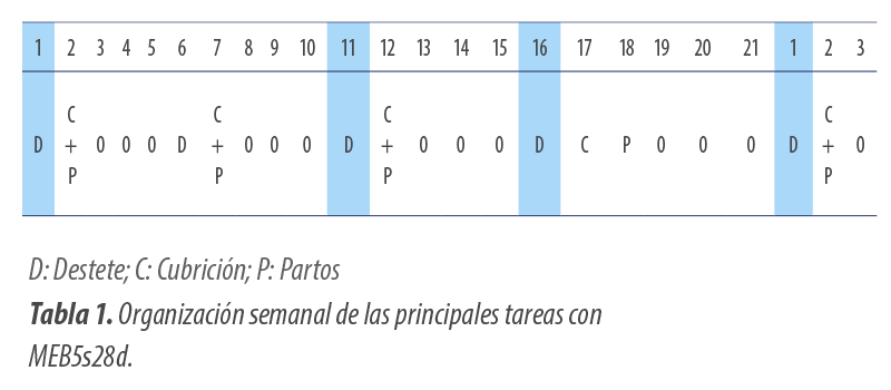 En comparación con el MEB3s28d tiene la ventaja de poder destetar a 28 días, pero con una rotación de salas de maternidad de 5 semanas, lo que se traduce en un lote productivo extra (8 en vez de 7).