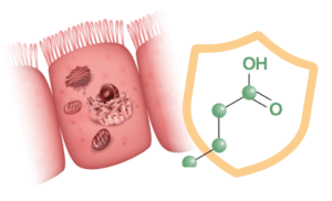 Los principales AGCC (acetato, propionato y butirato) son ácidos orgánicos débiles que contribuyen a la disminución del pH intestinal tras su liberación, favoreciendo la proliferación de bacterias beneficiosas, inhibiendo la de bacterias patógenas y mejorando la absorción de calcio y magnesio. Además, esta acidificación potencia la función del butirato como fuente de energía de los colonocitos.
