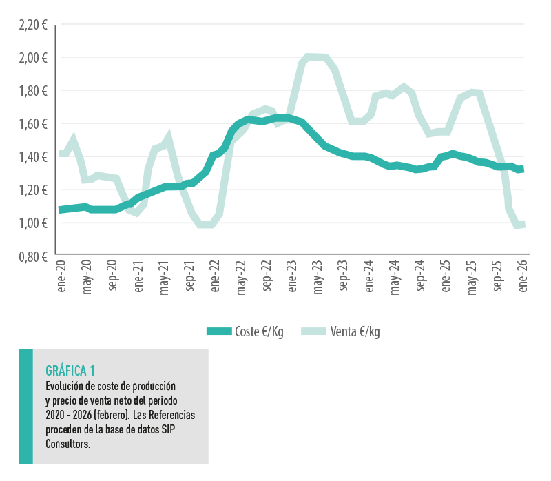 A pesar de la recuperación del precio de venta en las últimas semanas, aún se mantiene lejos del coste de producción actual.
