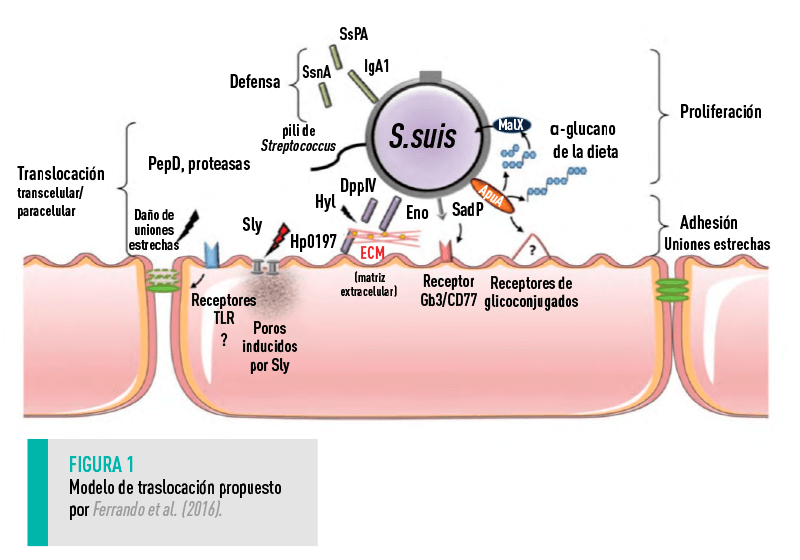 El primero se basa en el modelo de traslocación de Ferrando et al. (2016), que postula que la pérdida de integridad intestinal favorece de forma definitiva la traslocación de Streptococcus suis.