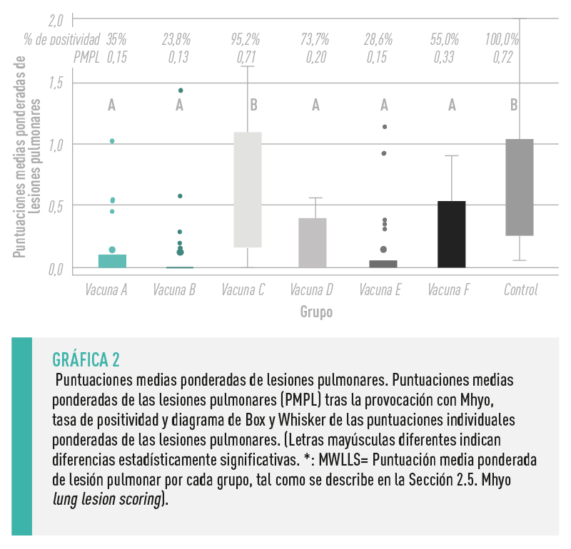 Todos los animales del grupo control presentaron lesiones pulmonares compatibles con Mhyo en el momento del sacrificio, a las 12 semanas de vida.