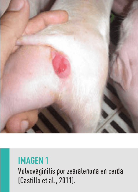 En cerdas nulíparas el consumo de alimentos contaminados con ZEN en dosis relativamente bajas (1,5 a 2 ppm) provoca inflamación de la pared vaginal y vulvar, aumento del útero, atrofia de los ovarios, etc. (Obremski et al., 2003; Kauffold et al., 2005).