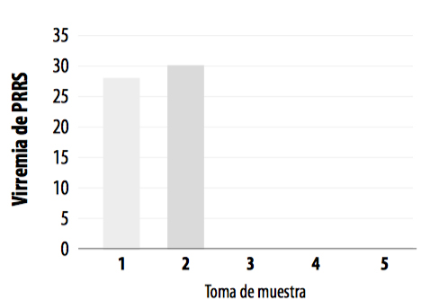 La ausencia de respuesta en los biomarcadores de inflamación e inmunidad se podría explicar porque los lechones ya eran positivos antes de su entrada en el cebo, lo que impediría una activación detectable en la fase final de la viremia.