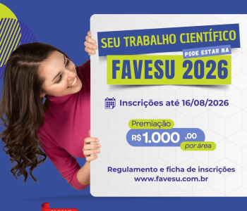 As normas completas para elaboração dos trabalhos, confecção de banners e apresentações orais estão disponíveis no regulamento oficial da FAVESU 2026. A inscrição é gratuita e deve ser realizada exclusivamente por meio de formulário online também disponível no site, no link https://www.favesu.com.
