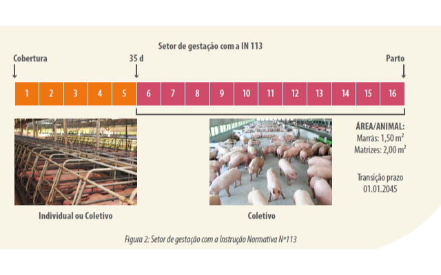 Embora a suinocultura brasileira sofra inúmeras dificuldades econômicas, ela vem adotando gradativamente o sistema de alojamento coletivo, inicialmente na forma de adesão voluntária liderada pelas agroindústrias exportadoras, e mais recentemente acelerada pela publicação da IN 113.
