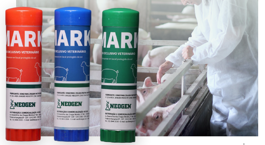 Além das agulhas, a Neogen conta com a linha de vacinadores Prima e marcadores reconhecidamente resistentes e de variadas cores tanto em bastão de cera quanto em spray.