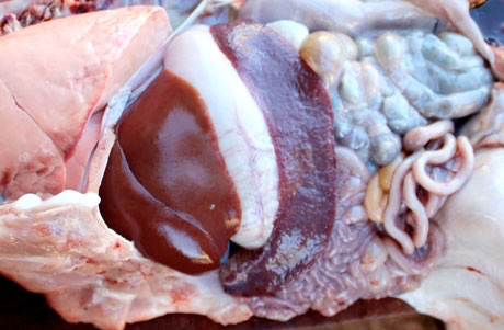 Imagen 14. Bazo de cerdo con esplenomegalia. Se aprecia un agrandamiento moderado del bazo, mientras que los demás órganos no presentan lesiones evidentes.