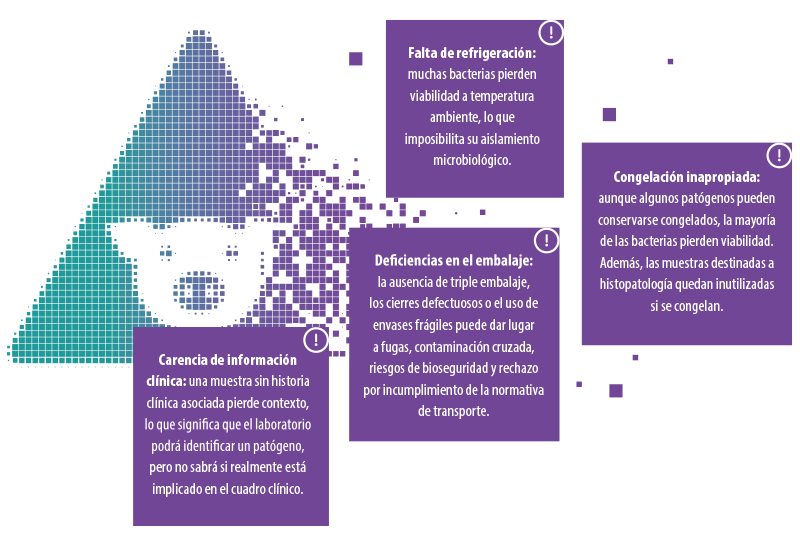 Una muestra correctamente seleccionada y obtenida puede perder totalmente su valor si no se envía en condiciones adecuadas. Los errores más habituales son: