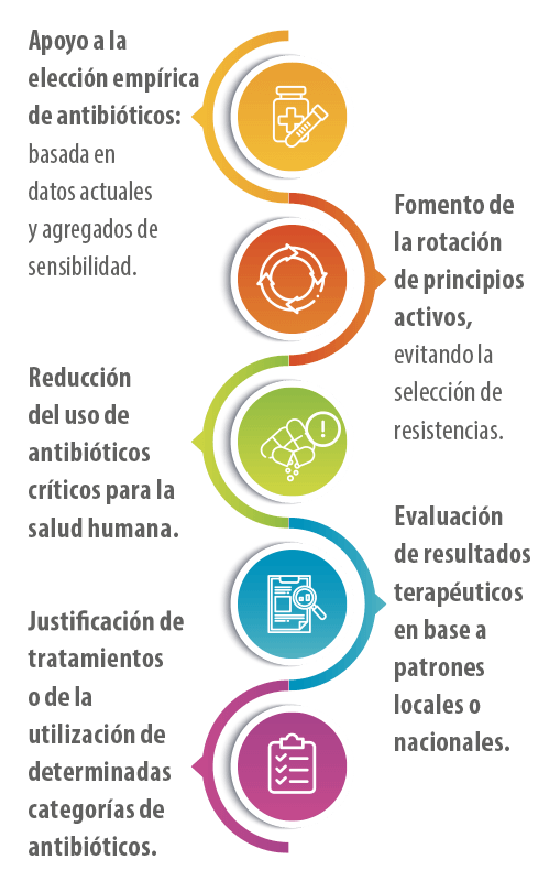 Además, permite orientar medidas políticas ajustadas y adaptar la prescripción antibiótica con el fin de mejorar los resultados terapéuticos, así como constituir una herramienta de apoyo en los Programas de Optimización del Uso de Antimicrobianos (PROA).